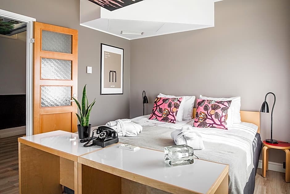 This air-conditioned room features design furniture by Alvar Aalto, a flat-screen TV with Chromecast, a 35 in wide bed from Hilding Anders and complimentary natural and responsible toiletries from SEES.
